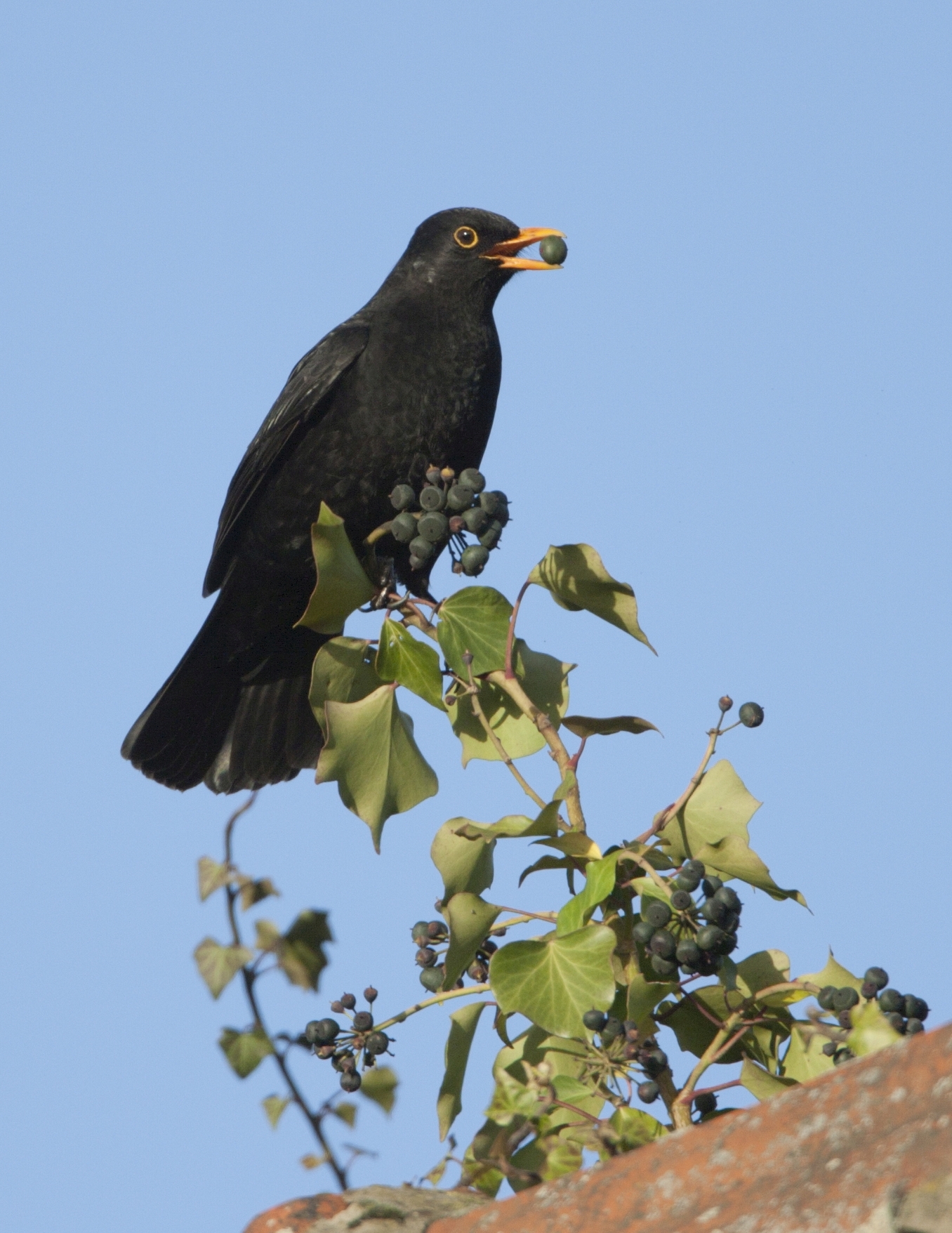 Na de bloei volgen zwarte bessen. Voor mensen giftig, maar voor merels en duiven een welkome maaltijd tegen het einde van de winter.